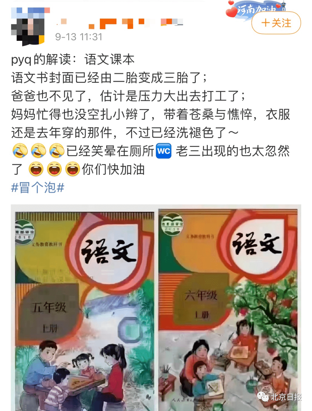 网传课本封面宣传三胎 人教社回应 社会万象 星岛环球网